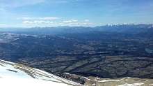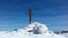 Non ci scoraggiamo e decisi a fare un po’ di dislivello, per gambe e fiato, ed una buona discesa su neve primaverile (sarebbe la prima della stagione, sic!), eccoci con gli sci in direzione Macchie Piane, per ascendere al Pizzo di Sevo. Nonostante un po’ di “metti e leva” all'inizio della salita, tutto sommato troviamo una buona linea che ci consente in poco più di due ore di arrivare in vetta, dove la grande croce domina tutto il paesaggio circostante dai suoi 2419 metri.