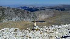 Finito il bosco, si imbocca il vallone del Cieco che, con una pendenza più graduale ci accompagna direttamente alle Caparnie, tre piccoli rifugi dei pastori collocati in ordine sequenziale, che invitano a fare una sosta. Siamo poco sopra i 1700 metri di quota e ne approfittiamo per bere dell’acqua e provvedere al primo cambio della maglietta. Nel mentre, il cane Lucio, come sempre euforico protagonista delle nostre salite appenniniche, ha già macinato il doppio dei chilometri alla ricerca di rumori e odori tipici del bosco appenninico.