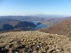 Il percorso sale ancora e giunti alla località denominata "Scaluni", iniziamo a godere di un panorama spettacolare sul lago del Turano, con i suoi borghi medievali, quali Colle di Tora ed Ascrea, arroccati sugli speroni rocciosi. Non lontano si vede la catena dei monti Lucretili, un po' più distante il profilo inconfondibile del monte Soratte, quasi di fronte alla nostra vista il gruppo del Terminillo. Tempo di una breve pausa per bere e riprendere fiato, che la salita riprende in direzione della vetta. In meno di mezz’ora siamo in cresta e, di lì a poco, raggiungiamo con un ultimo strappo la grande croce di legno posta sui 1.438 metri di altezza della cima.