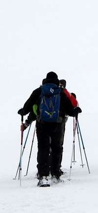 Quasi tutti abbiamo le ciaspole, alcuni hanno gli sci con le pelli di foca.