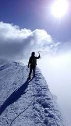 Tra una lettura e qualche chiacchiera, il pomeriggio trascorre tranquillo, mentre osserviamo cordate che vanno e vengono e, soprattutto, avventori che salgono in direzione del rifugio: la sera, la sala da pranzo sarà stracolma di alpinisti di tutte le nazionalità. Si ha l’impressione che il rumore, le voci, le risate, le luci ed i movimenti del rifugio affollato stonino con il silenzio del ghiacciaio illuminato dalla luna piena, severo, freddo, inospitale e, nel contempo, affascinante e dalla potente carica attrattiva. Esci fuori a fumare una sigaretta e, nell’oscurità, vedi crepacci bianchi e grigi, rocce nere, vette proiettate nel cielo, ed ancora le luci lontane delle valli, quelle luci che riempiono il venerdì sera dei ristoranti e delle birrerie, luci che conosciamo bene perché fino alla sera prima ci hanno accompagnato. Oggi siamo qui, ad oltre 3600 metri e mentre guardiamo lontano non pensiamo a nulla o forse pensiamo troppo alla salita dell’indomani… di fatto ci godiamo l’inquietante e spettacolare paesaggio che ci circonda.