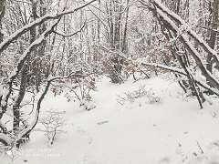 Percorriamo il bosco, il cui paesaggio, con un innevamento più abbondante di quanto ci aspettassimo, è suggestivo e tipicamente invernale, con i centimetri di neve che aumentano salendo di quota.