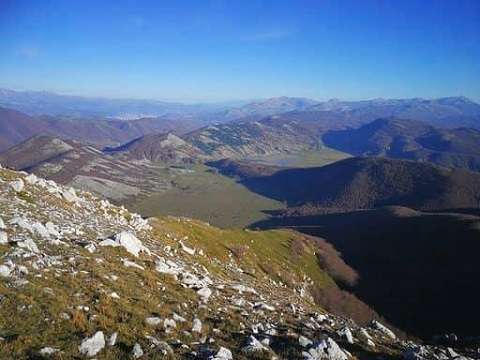 Conversazioni alternate a momenti più riflessivi e personali inframezzano la giornata che scorre serena. In fondo l’autunno ci invita al raccoglimento e per noi la montagna rappresenta un terreno privilegiato per viverlo. In cima, con assenza di vento e cielo terso, respiriamo la leggerezza della salita, quel benessere psicofisico che va oltre qualsiasi stanchezza del corpo. Un panino, una barretta energetica, della frutta secca, le foto di rito, e le immancabili risate. Si riparte per la discesa, prendendo un fuori-sentiero che, lungo la panoramica cresta prima e nel fitto bosco poi, ci condurrà diretti verso Pian di Cornino, gemello minore di Pian del Rascino.