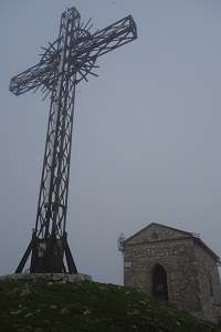 Una enorme croce metallica costruita nel 1903 ha resistito agli anni ed ai bombardamenti degli americani che distrussero la chiesetta attigua, eretta nel 1904 sui ruderi di una antica torre medioevale, credendovi presente un posto di osservazione tedesco.