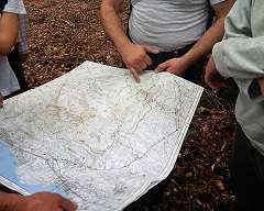 Viene illustrata la cartina e la bussola anche ai più giovani, i quali essendo “nativi digitali” sono meno adusi a curve di livello e cartografia in genere. Il nostro amico, che oggi ci fa anche da guida, dispensa brevi insegnamenti su nozioni base di orientamento. Infine, come ulteriore premura, mostra un GPS dove ha inserito i punti di riferimento per questa escursione.